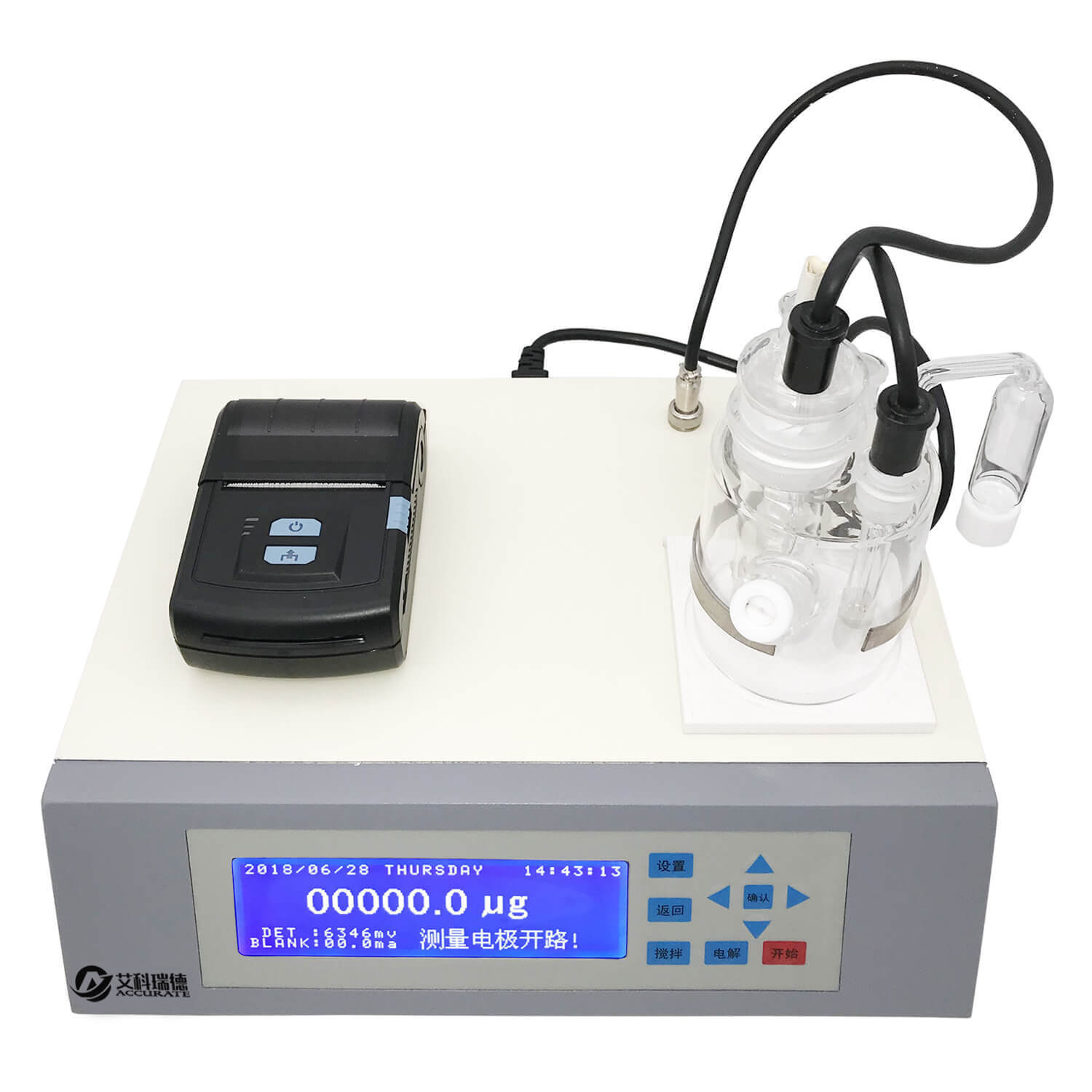 艾科瑞德牌AKD-A7智能微量水分測定儀的測試方法為卡爾-費休庫倫法,是世界公認的測試水含量的方法。儀器自帶計算公式,測試結束直接顯示樣品的含水百分率,同時配備微型熱敏打印機,自動打印測試結果。該儀器具有測量精度高、重復性好、測試成本低等優(yōu)點,被廣泛應用于石油、化工、醫(yī)藥、電力、科研和教育等部門。