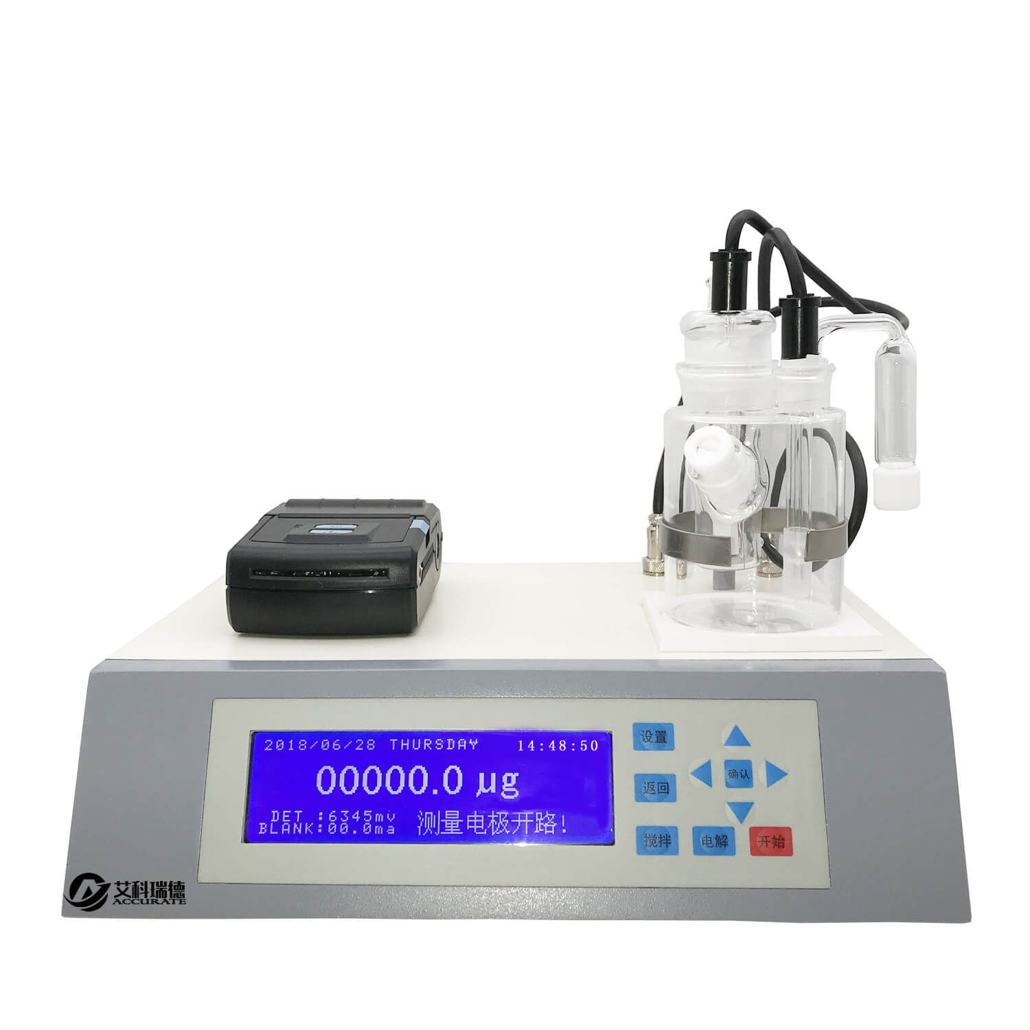 艾科瑞德牌AKD-A7智能微量水分測定儀的測試方法為卡爾-費休庫倫法,是世界公認(rèn)的測試水含量的方法。儀器自帶計算公式,測試結(jié)束直接顯示樣品的含水百分率,同時配備微型熱敏打印機,自動打印測試結(jié)果。該儀器具有測量精度高、重復(fù)性好、測試成本低等優(yōu)點,被廣泛應(yīng)用于石油、化工、醫(yī)藥、電力、科研和教育等部門。